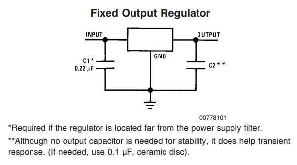 To supply power to the measurement devices, I chose a combination of regulators to power the sensor devices. This provided a smooth 5 V and 3.3 V source for most components, with local decoupling capacitors where needed. The LM7805 is a prime candidate for 5 V regulation as its implementation is simple, only requiring two capacitors on the Vin and Vout. The 7805 is also tolerant to the range of voltage seen after rectification.