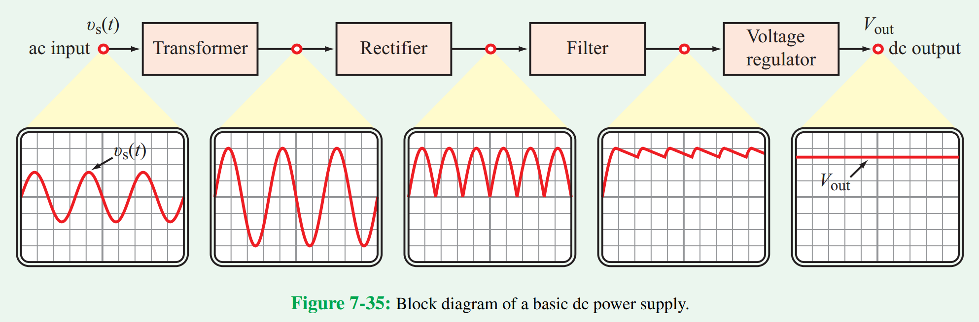 Fig 7-35 of Circuit Analysis and Design1 Block diagram of a basic AC‑DC linear power supply